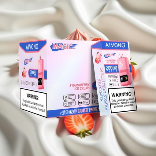 Aivono AIM MAGIC 20000 Puffs Disposable Vape Strawberry Ice Cream – 26mL E-liquid, Dual Mesh Coils, LCD Display, Type-C Rechargeable, 600mAh Battery, 0/2/3/5% Nicotine
