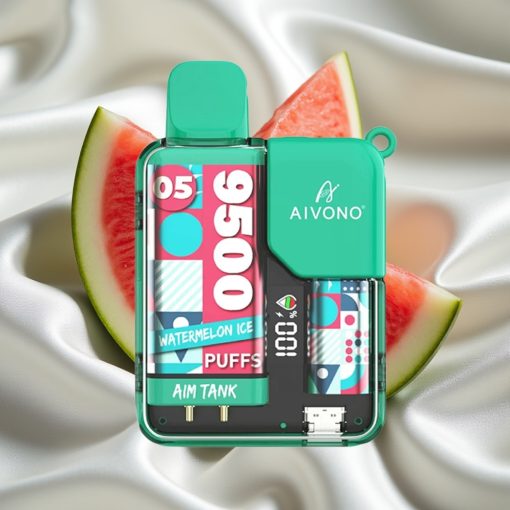 Aivono AIM-TANK 9500 Puffs Disposable Vape Watermelon Ice with 18ml E-liquid, 650mAh Battery, LCD Display, and 1.2ohm Mesh Coil