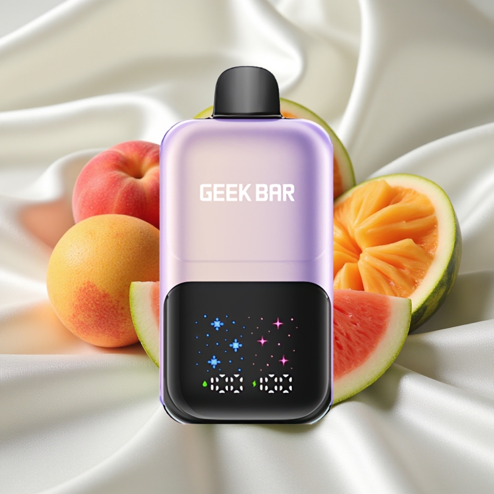 GEEK BAR 2GO 20mL 50000 Puffs Dual Tank Disposable Vape Pen with Interactive Screen & Adjustable Coolness – Peach Mango Watermelon Ice