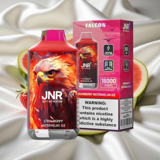 JNR Falcon 16000 Puffs Disposable Vape – Strawberry Watermelon Ice | 850mAh Battery | 22mL E-liquid | Dual Mesh Coil | Type C & Lightning Charging | Smart LED Display | 0%,2% Nicotine