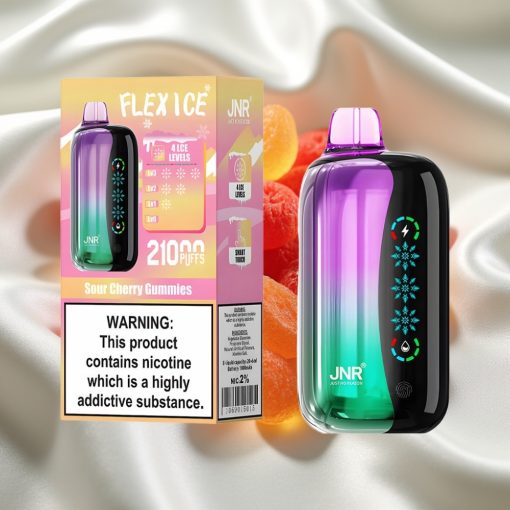 JNR Flex Ice 21000 Puffs Disposable Vape Sour Cherry Gummies with Ice Adjustable, 26ml E-liquid, Customizable Airflow, 1.2 Ohm Dual Mesh, 1000mAh Battery, Type-C Charging