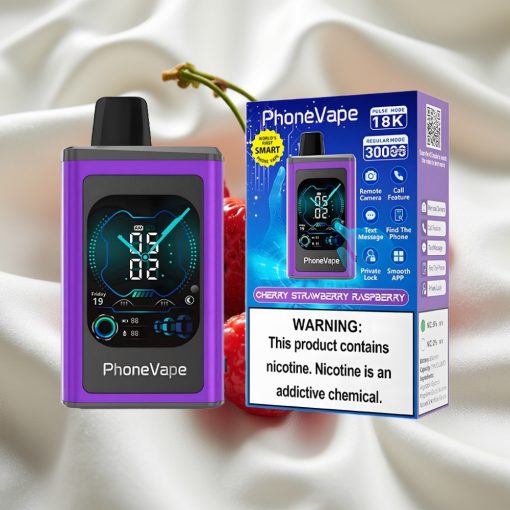 JNR PhoneVape 30000 Puffs Disposable Vape Cherry Strawberry Raspberry – 850mAh Type-C Rechargeable, Turbo Mode, Adjustable Airflow, App Controlled, 2%/5%