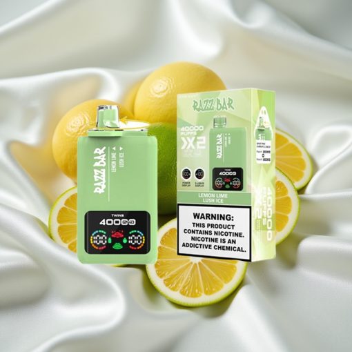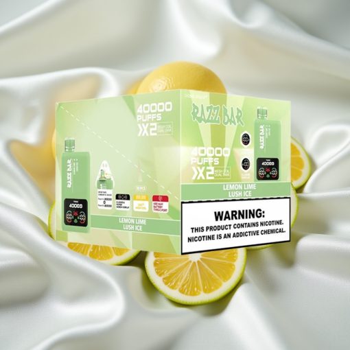 Razz Bar 40000 Puffs Disposable Vape LEMON LIME & LUSH ICE with Power Screen Display, 1.0Ω×2 Mesh Coil, 650mAh Battery, and Type-C Port (2%/5% Nicotine)