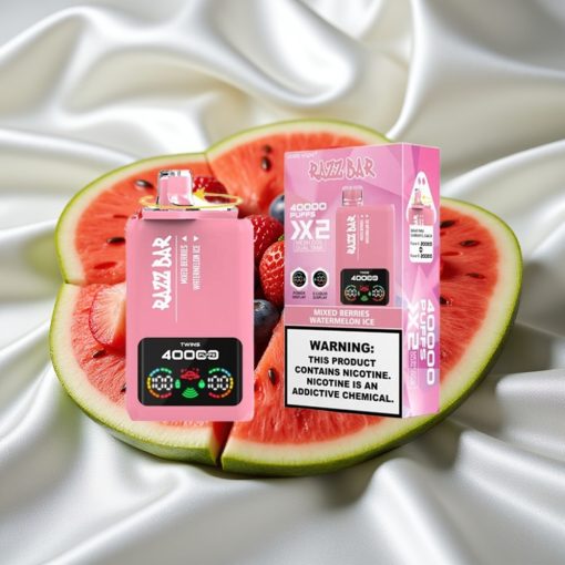 Razz Bar 40000 Puffs Disposable Vape with Power Screen Display, 1.0Ω×2 Mesh Coil & Type-C Port – Mixed Berries & Watermelon Ice (2%/5% Nicotine)