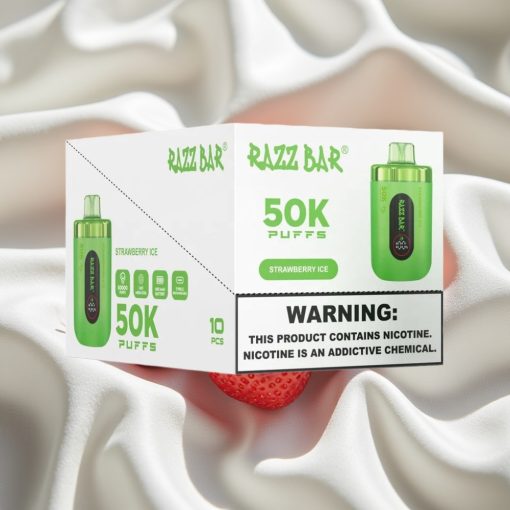 Razz Bar 50K Puffs Disposable Vape Strawberry Ice – 50000 Puffs, 1.0 Ohm Mesh Coil, 650mAh Type-C Rechargeable, 2% Nicotine